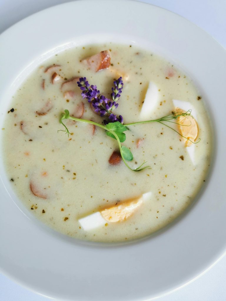 Polish breakfast often includes sweet options like pancakes, pastries, or bread with jam. Meanwhile, lunch is the main meal of the day and frequently starts with soup (like żurek or barszcz).