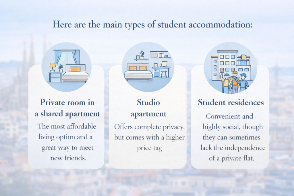 Moving to Spain? Learn how to rent a best room in Barcelona, discover the best neighborhoods, and safely book your accommodation before you arrive. Finding student accommodation in a foreign country can feel intimidating, especially if you are unfamiliar with the local rental market. But don’t worry! With the right guidance, finding a budget-friendly and comfortable flat can be a seamless experience.