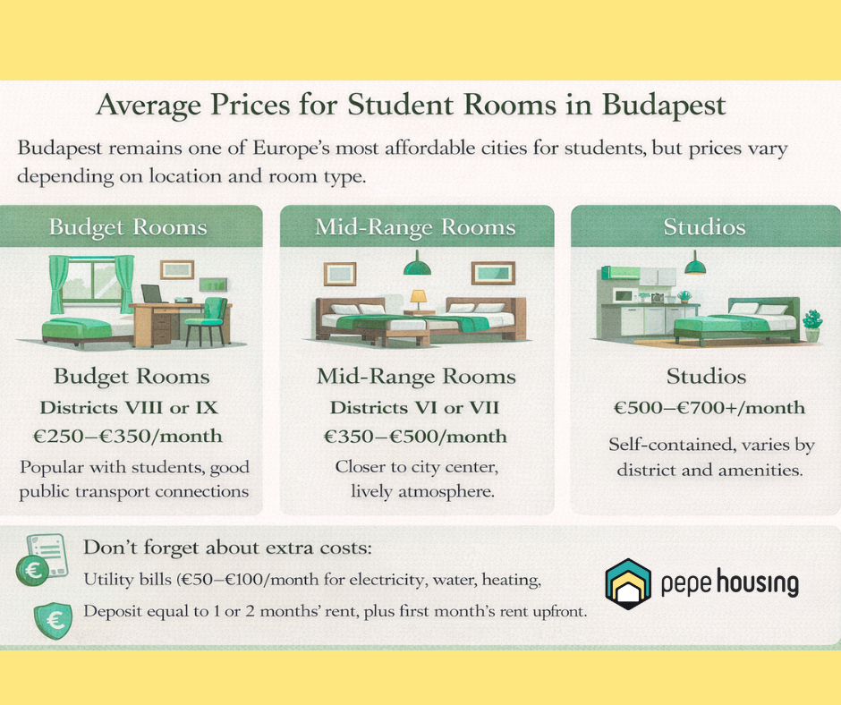 Budapest remains one of Europe's most affordable cities for students, but prices vary depending on location and room type.